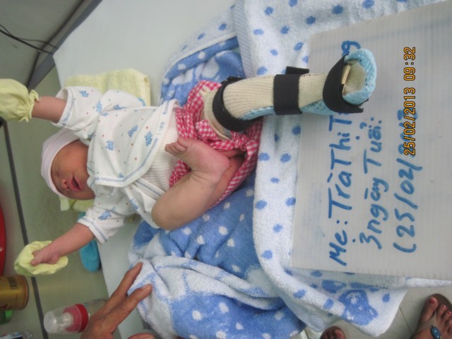 Trẻ sơ sinh 3 ngày tuổi được làm nẹp bàn chân khoèo