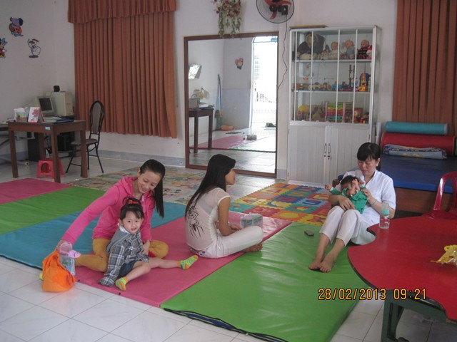 Trong tháng 4/2013, các trẻ khó khăn vận động vẫn đều đặn đến tập vật lý trị liệu tại Trung tâm với khoảng 44 lượt tập mỗi tuần. Đồng thời, phòng Chỉnh hình - VLTL của Trung tâm sản xuất 9 dụng cụ trợ giúp cho trẻ khuyết tật.