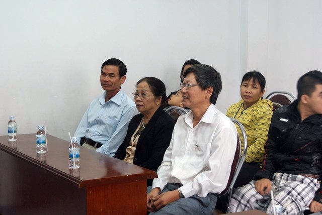 Bác Lê Thanh Xuân, Phó Chủ tịch Hội Ái mộ Yersin chia sẻ cùng các gia đình có trẻ khuyết tật.