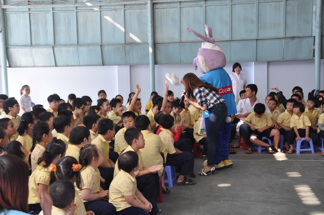 Đầu buổi giao lưu, các em đã được cô giáo phụ trách chương trình Nha học đường từ công ty Colgate nhắc nhở và đưa những lời khuyên bổ ích của việc giữ gìn vệ sinh răng – miệng và các em cũng đã nhận được phần quà nhỏ của công ty Colgate.