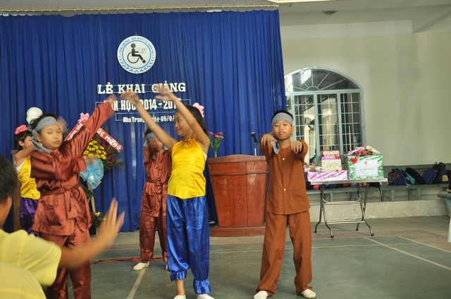 Tiết mục văn nghệ mở đầu buổi lễ Khai giảng do các em học sinh khuyết tật tại Trung tâm biễu diễn.