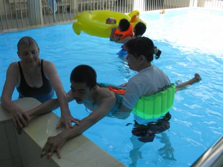 Tập vận động dưới nước cho các cháu đang tập VLTT tại Trung tâm