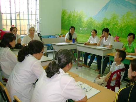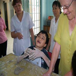Một số hình ảnh hoạt động của bà Andrée Chapron và cô Marie Dattin, chuyên gia hoạt động trị liệu tại Trung tâm PHCN-GDTE khuyết tật Khánh Hòa năm 2011.