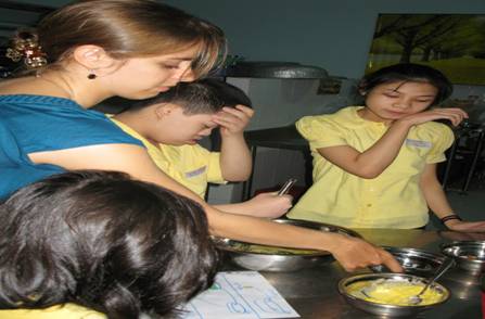 các em chậm phát triển và khó khăn vận động làm bánh