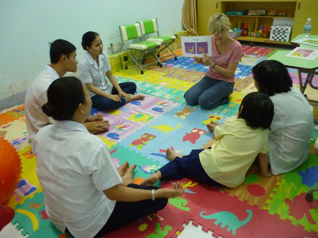 Trong khuôn khổ hơp tác giữa Tổ chức L’APPEL-Lorient và Sở Y tế tỉnh Khánh Hòa, từ ngày 23/3 -26/3, các bác sĩ, kỹ thuật viên vật lý trị liệu, nhà tâm vận động, hoạt động trị liệu của Tổ chức L’APPEL-Lorient đã đến Trung tâm để cùng chia sẻ kinh nghiệm và chuyển giao kỹ thuật trong công tác phục hồi chức năng cho trẻ khuyết tật tại Trung tâm. Cũng nhân chuyến công tác này, đoàn đã kiểm tra, đánh giá chương trình “ Can thiệp sớm” mà Tổ chức L’APPEL đã hỗ trợ kinh phí trong năm qua. Năm 2015, L’APPEL-Lorient tiếp tục hỗ trợ chương trình “ Can thiệp sớm” cho trẻ khuyết tật từ 0 đến 6 tuổi có hoàn cảnh khó khăn đang tập vật lý trị liệu tại Trung tâm. Đây là năm thứ 5 liên tiếp Tổ chức L’APPEL-Lorient đã đồng hành cùng với các kỹ thuật viên và gia đình các trẻ hưởng thụ chương trình nhằm giúp các trẻ phục hồi chức năng và sớm hòa nhập cộng đồng.