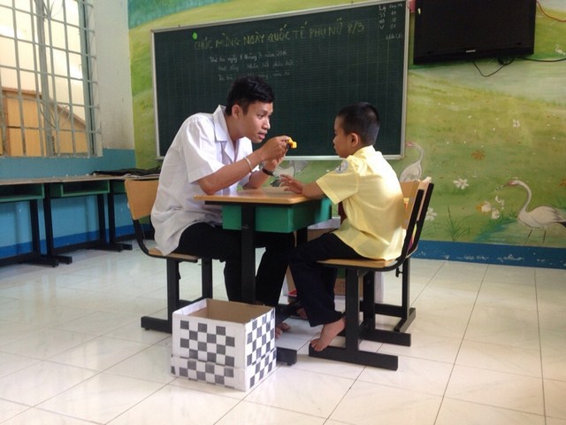 Sau khi nghe Bác sĩ Phan Văn Hiệp - Giám đốc trung tâm - giới thiệu về chức năng, nhiệm vụ của Trung tâm, các sinh viên đã được phân chia theo nhóm về các lớp chậm phát triển trí tuệ ở tất cả các nhóm (Nhà trẻ, Mầm non, Tiểu học) để thực tập nhằm làm quen với nghề nghiệp tương lai cũng như hoàn thành khóa học.