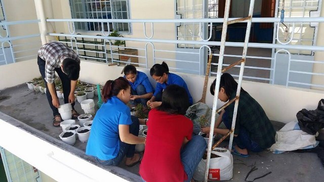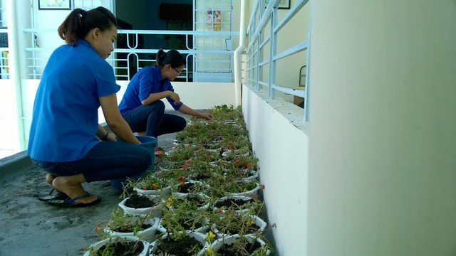 Ngoài những công việc chuẩn bị về cơ sở vật chất, vệ sinh, trang trí lại các lớp học, chuẩn bị đồ chơi,…, Chi đoàn thanh niên Trung tâm đã trồng hoa trong khuôn viên của Trung tâm nhằm tô điểm thêm không gian xanh cho Trung tâm để chào đón năm học mới 2016-2017.