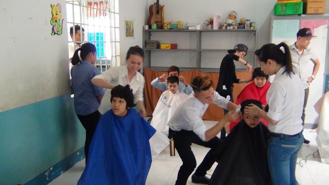 Các anh chị của Salo tóc POLO đang chăm chút cho mái tóc của các em.