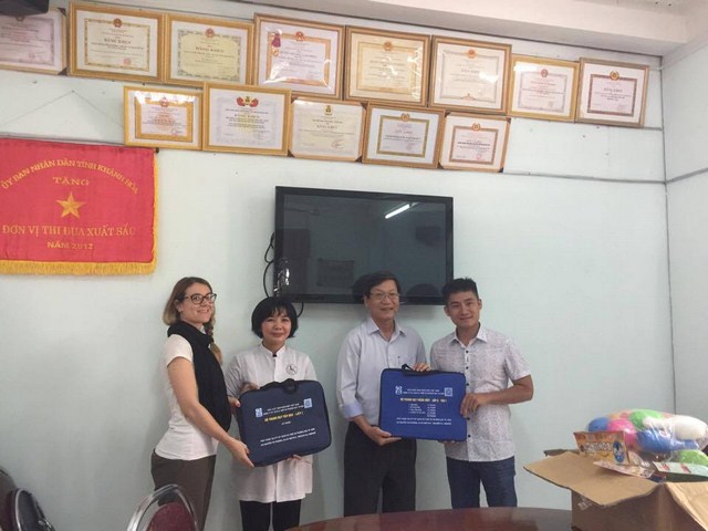 Hai Bs trao tặng dụng cụ dạy học cho giáo viên Trung tâm