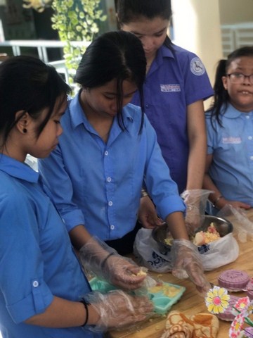 Học sinh giúp thầy cô làm mâm ngũ quả