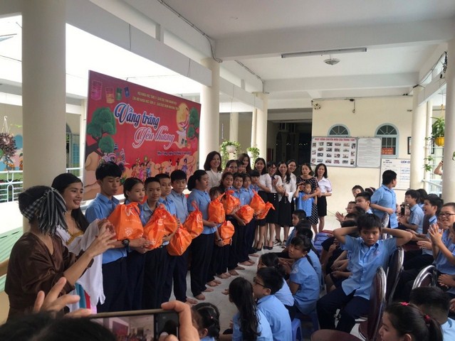 Các em học sinh nhận quà Trung thu