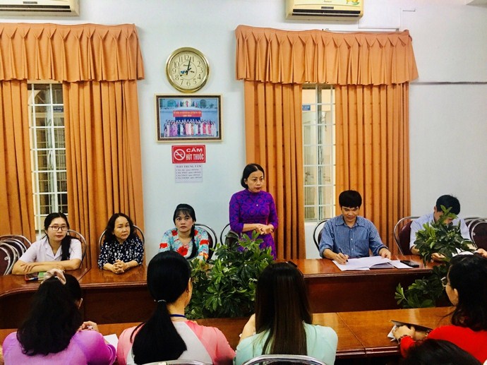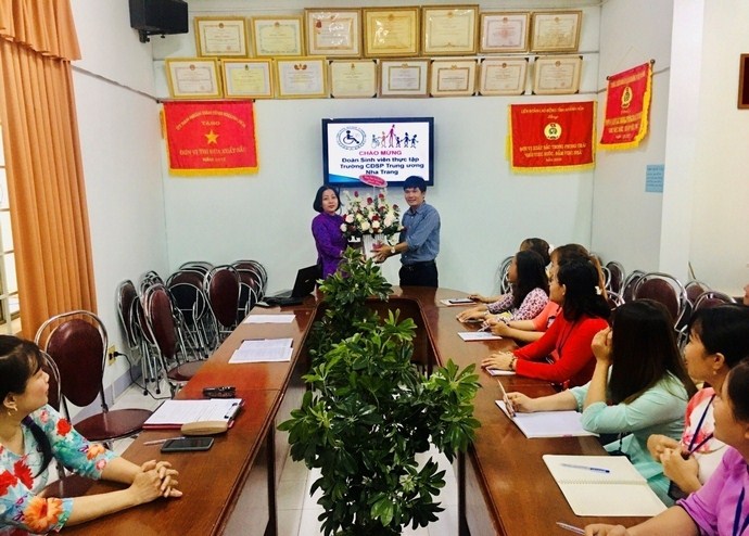Ngày tiếp nhận Đoàn thực tập cũng là Ngày Quốc tế Phụ nữ 8 tháng 3, Đại diện đoàn thực tập của Trường Cao đẳng sư phạm Trung ương Nha Trang đã tặng hoa cho tập thể nữ của Trung tâm.