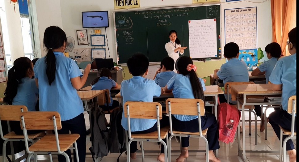 Sinh viên quan sát giờ học Toán của lớp 3B.