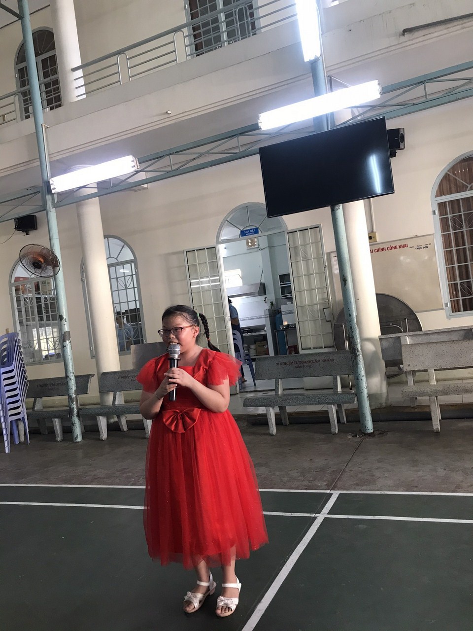 Em Nguyễn Lê Bảo Hân đại diện cho các bạn học sinh phát biểu cảm nghĩ của mình khi được học và vui chơi tại Trung tâm.