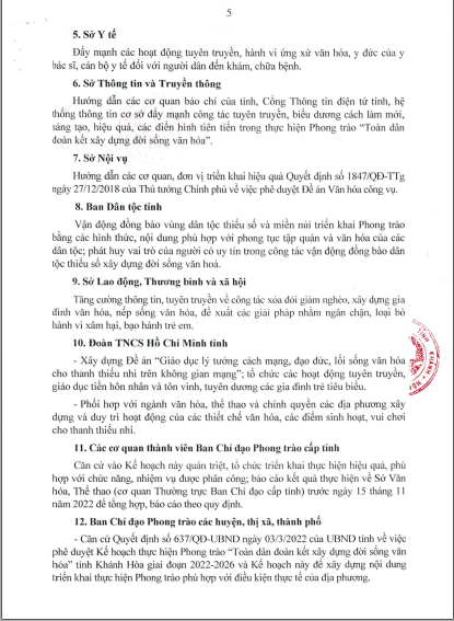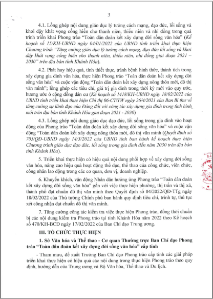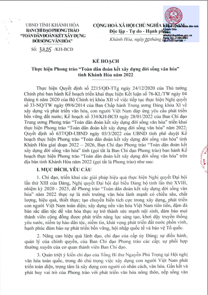Kế hoạch thực hiện Phong trào “Toàn dân đoàn kết xây dựng đời sống văn hóa tỉnh Khánh Hòa năm 2022”