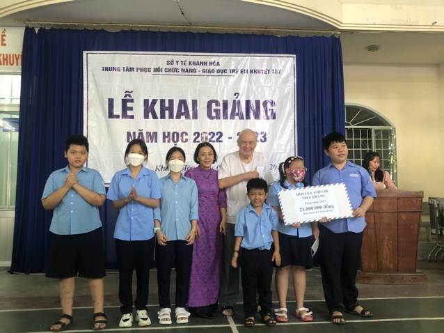 Về tham dự buổi lễ Khai giảng năm học mới với Trung tâm năm nay có BS CKII Lê Văn Khoa – PGĐ Sở Y tế Khánh Hoà, ngoài ra còn có các khách mời là đại diện của các hội, tổ chức từ thiện như Ông Rene Boulanger – Chủ tịch hội Les Amis de NT, BS – Tiến sĩ Trương Tấn Minh – Chủ tịch Hội Bảo trợ người khuyết tật, bệnh nhân nghèo và quyền trẻ em Khánh Hòa, Ông Đống Lương Sơn – CT hội Ái Mộ BS Yersin... Trong dịp này đại diện các hội đã trao những món quà hỗ trợ cho các em học sinh đang học tại Trung tâm.