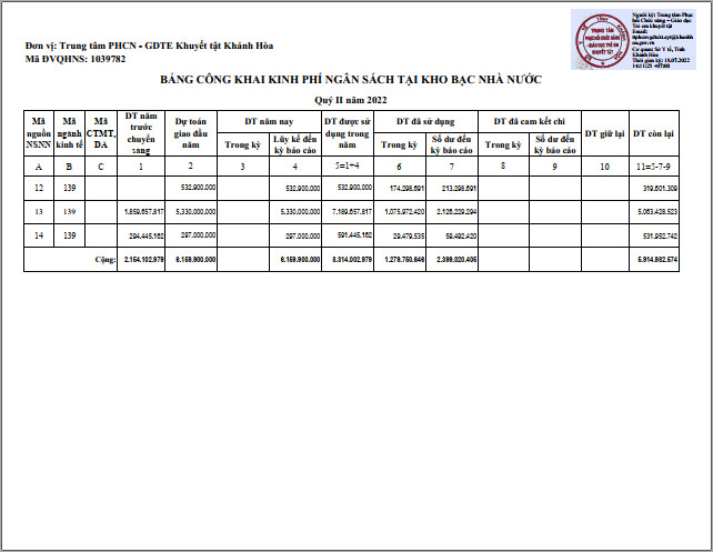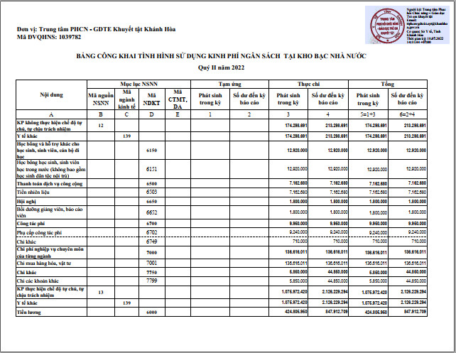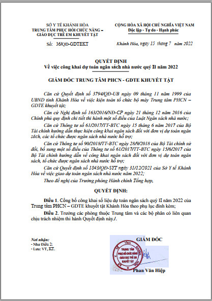 Quyết định công khai dự toán ngân sách Quý II/2022