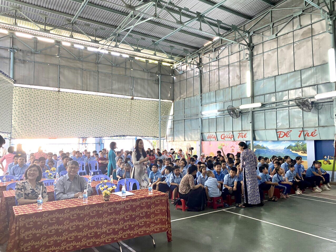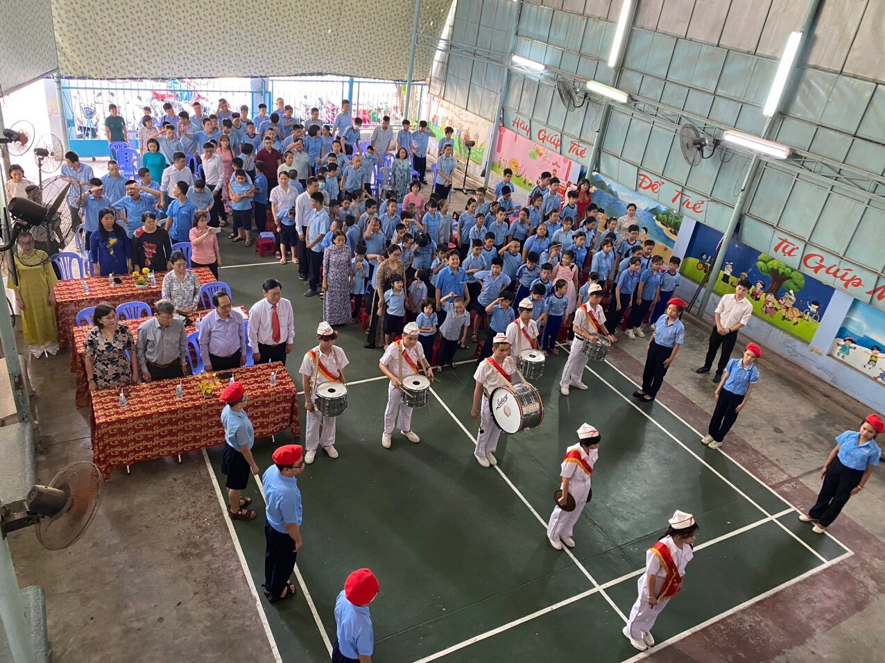 Buổi lễ kết thúc trong không khí thật bùi ngùi, cảm động với ca khúc “Tạm biệt” của thầy Đình Du và các bạn học sinh lớp 1B và 2B biểu diễn để chia tay cô Hà Thị Thuý về nghỉ hưu theo chế độ.