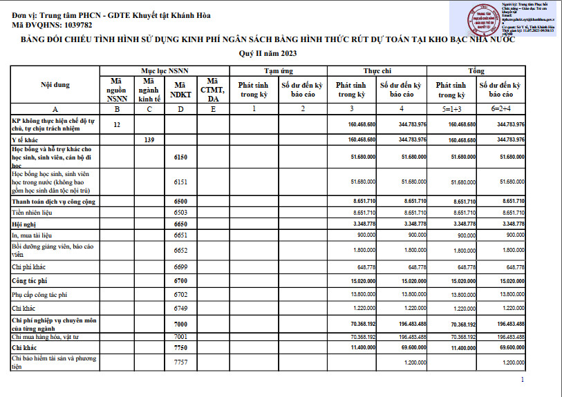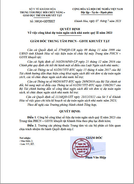 Quyết định công khai dự toán ngân sách nhà nước Quý II năm 2023