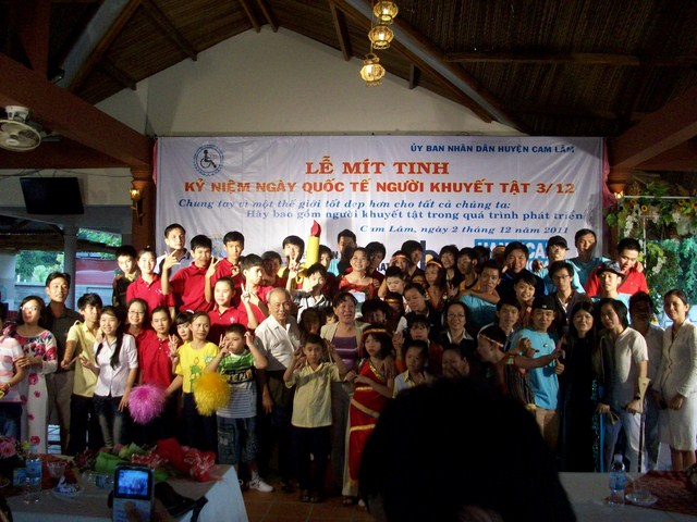 Hưởng ứng ngày Quốc tế Người khuyết tật 03/12 năm nay, được sự cho phép của Sở y tế Khánh Hòa, sự tài trợ của tổ chức Handicap International, Trung tâm PHCN-GDTE khuyết tật Khánh Hòa đã phối hợp với UBND thị xã Ninh Hòa, UBND huyện Cam Lâm tổ chức lễ Mitting tọa đàm long trọng trong hai ngày 01,02/12 để “ NHIỆT LIỆT CHÀO MỪNG NGÀY QUỐC TẾ NGƯỜI KHUYẾT TẬT 03.12”.