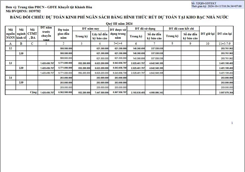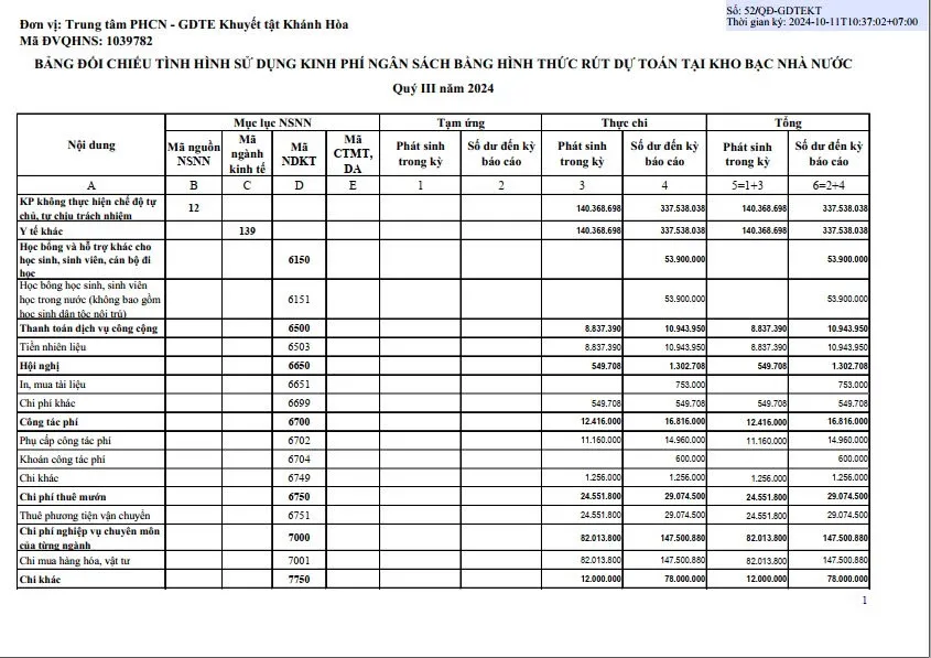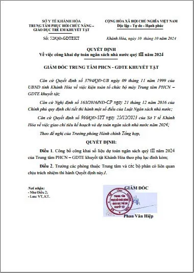 Quyết định công khai dự toán ngân sách nhà nước quý III năm 2024