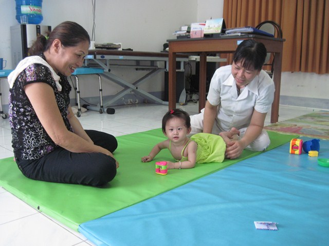 Trong khuôn khổ hợp tác với tổ chức AGIR abcd của Pháp, trong 3 năm vừa qua, AGIRabcd thường xuyên cử chuyên gia sang Trung tâm để giúp đỡ, chia sẻ một số kinh nghiệm trong việc chăm sóc cháu khuyết tật, hỗ trợ một số trang thiết bị cho các cháu đang tập VLTL cũng như các cháu học sinh đang theo học tại Trung tâm.