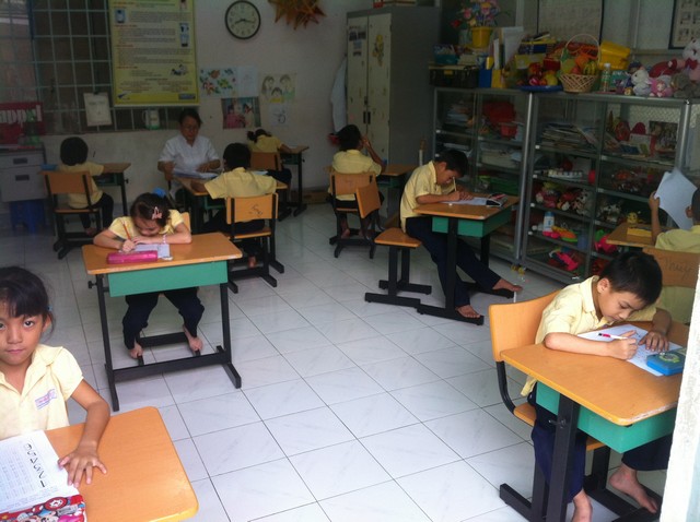 Giờ kiểm tra môn Tiếng Việt của lớp Dự Bị