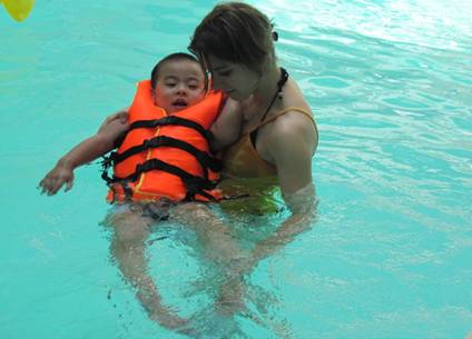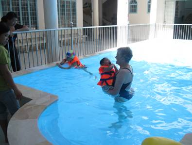 Tập vận động dưới nước cho các cháu đang tập VLTT tại Trung tâm