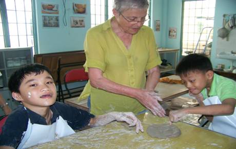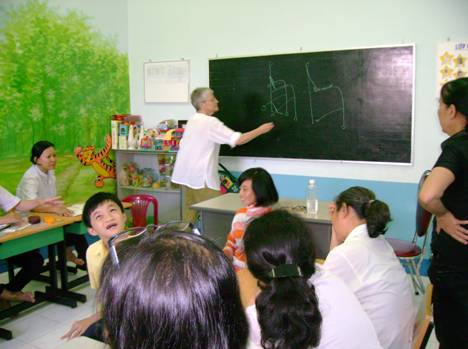 Một số hình ảnh hoạt động của bà Andrée Chapron và cô Marie Dattin, chuyên gia hoạt động trị liệu tại Trung tâm PHCN-GDTE khuyết tật Khánh Hòa năm 2011.
