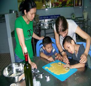 các em chậm phát triển và khó khăn vận động làm bánh