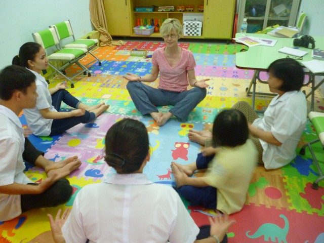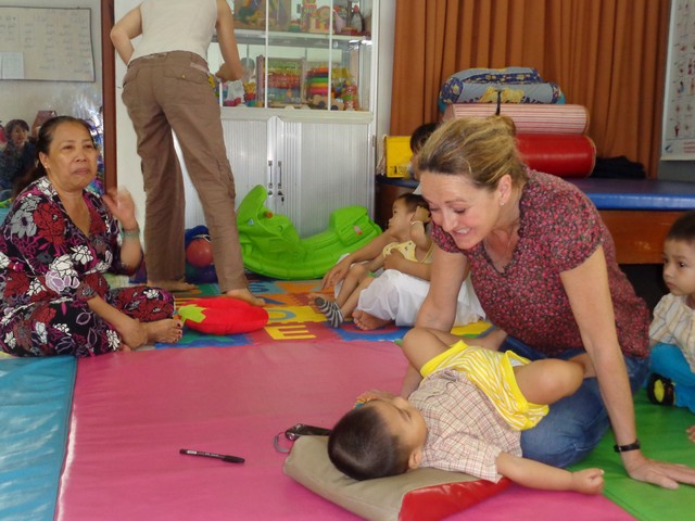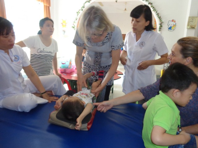Trong khuôn khổ hơp tác giữa Tổ chức L’APPEL-Lorient và Sở Y tế tỉnh Khánh Hòa, từ ngày 23/3 -26/3, các bác sĩ, kỹ thuật viên vật lý trị liệu, nhà tâm vận động, hoạt động trị liệu của Tổ chức L’APPEL-Lorient đã đến Trung tâm để cùng chia sẻ kinh nghiệm và chuyển giao kỹ thuật trong công tác phục hồi chức năng cho trẻ khuyết tật tại Trung tâm. Cũng nhân chuyến công tác này, đoàn đã kiểm tra, đánh giá chương trình “ Can thiệp sớm” mà Tổ chức L’APPEL đã hỗ trợ kinh phí trong năm qua. Năm 2015, L’APPEL-Lorient tiếp tục hỗ trợ chương trình “ Can thiệp sớm” cho trẻ khuyết tật từ 0 đến 6 tuổi có hoàn cảnh khó khăn đang tập vật lý trị liệu tại Trung tâm. Đây là năm thứ 5 liên tiếp Tổ chức L’APPEL-Lorient đã đồng hành cùng với các kỹ thuật viên và gia đình các trẻ hưởng thụ chương trình nhằm giúp các trẻ phục hồi chức năng và sớm hòa nhập cộng đồng.