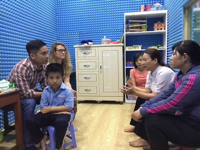 Từ ngày 22 - 24/02/2017, Bs thính học Nguyễn Quốc Thịnh và cộng sự cô Michela De Laurentis, quốc tịch Ý đang làm việc tại Anh đã đến thăm, tặng đồ dùng dạy học cho giáo viên và trao máy trợ thính cho trẻ khiếm thính đang học tại Trung tâm và trẻ ngoài cộng đồng. Trong gần ba ngày làm việc, Bs Thịnh và Bs Michela đã phối hợp cùng KTV của Trung tâm đo, kiểm tra mức độ mất thính lực của 8 trẻ có nhu cầu máy trợ thính.