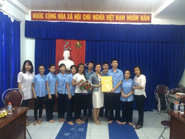 Tặng quà lưu niệm cho các cô ở Trung tâm Yoga.