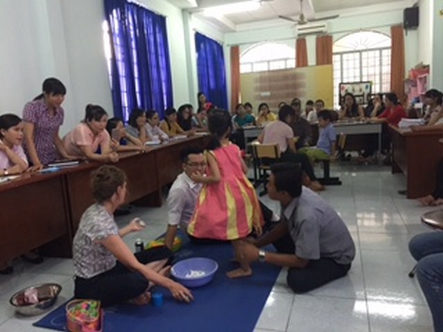 Đợt tập huấn có sự tham gia của 2 chuyên gia trị liệu ngôn ngữ - lời nói Stephanie Kucan (Úc) và Thao L.Phạm (Hoa Kỳ), cùng với 38 cán bộ đến từ các phòng giáo dục, các cơ sở chuyên biệt, giáo viên các trung tâm và 20 phụ huynh có trẻ khuyết tật.
