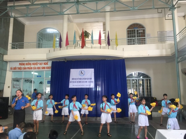 Tiết mục múa – hát : “Ai yêu nhi đồng bằng Bác Hồ Chí Minh” của các em học sinh và giáo viên tại Trung tâm.