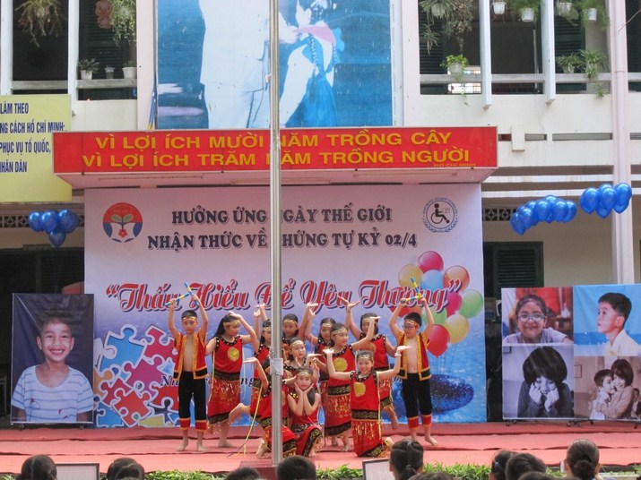 Trong chương trình, các giáo viên, học sinh trường Tân Lập 2 và giáo viên, học sinh của Trung tâm đã có những sự phối hợp nhịp nhàng và sôi nổi trong phần văn nghệ chào mừng, hái hòa dân chủ với chủ đề về trẻ tự kỷ và trò chơi.