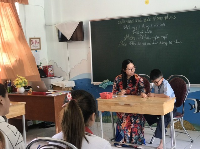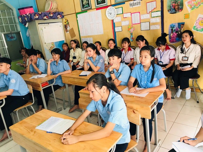 Sinh viên quan sát giờ học Toán của lớp 3B.