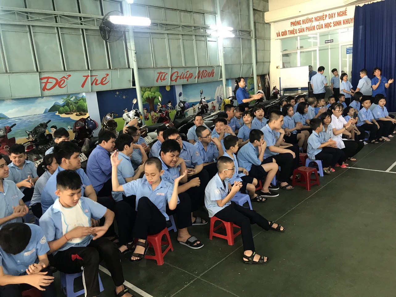 Nhân ngày Hội chứng Down thế giới 21/3, sáng ngày 19 tháng 3 năm 2021, Trung tâm đã tổ chức sinh hoạt, vui chơi cho các em học sinh khuyết tật trí tuệ, trong đó có học sinh mắc hội chứng Down. Với những tiết mục ca múa vui nhộn cùng những trò chơi tập thể thú vị đã làm cho buổi sinh hoạt rất vui vẻ và thoải mái. Đây cũng là hoạt động tập thể nhằm giúp các em học sinh mắc hội chứng Down cũng như học sinh khuyết tật trí tuệ khác có một buổi sinh hoạt bổ ích, qua đó giúp các em có một ngày của mình thật vui, thật ấm áp, ý nghĩa và giúp các em tự tin, phát triển kỹ năng trong các sinh hoạt hằng ngày.