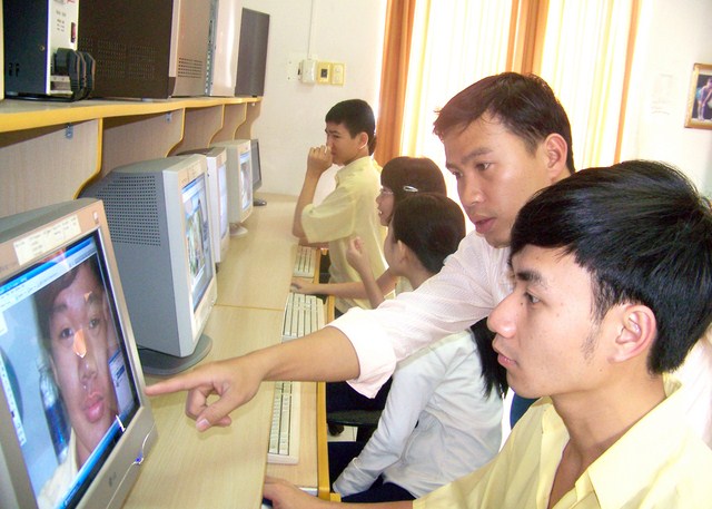 Tham gia giảng dạy vi tính cho các em học sinh tại Trung tâm PHCN-GDTE khuyết tật Khánh Hòa