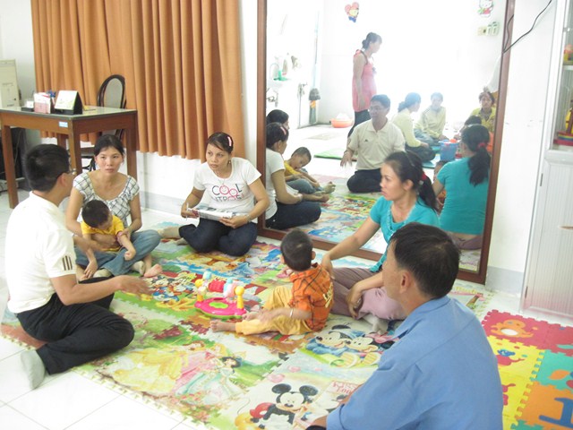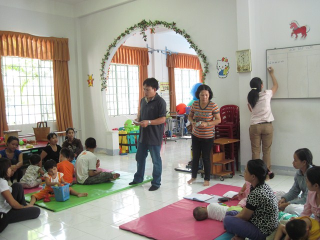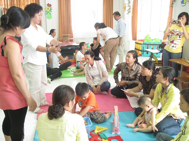 Để các gia đình trong các xã của Ninh Hòa và Cam Lâm đang trong chương trình “ Chào đón sự sống” của tổ chức HI tiếp cận được các kỹ thuật cũng như trang bị thêm một số kiến thức về chăm sóc trẻ khuyết tật tại nhà, Trung tâm đã phối hợp với tổ chức HI tổ chức các lớp tập huấn cho gia đình người thân người khuyết tật tại thị xã Ninh Hòa và huyện Cam Lâm.