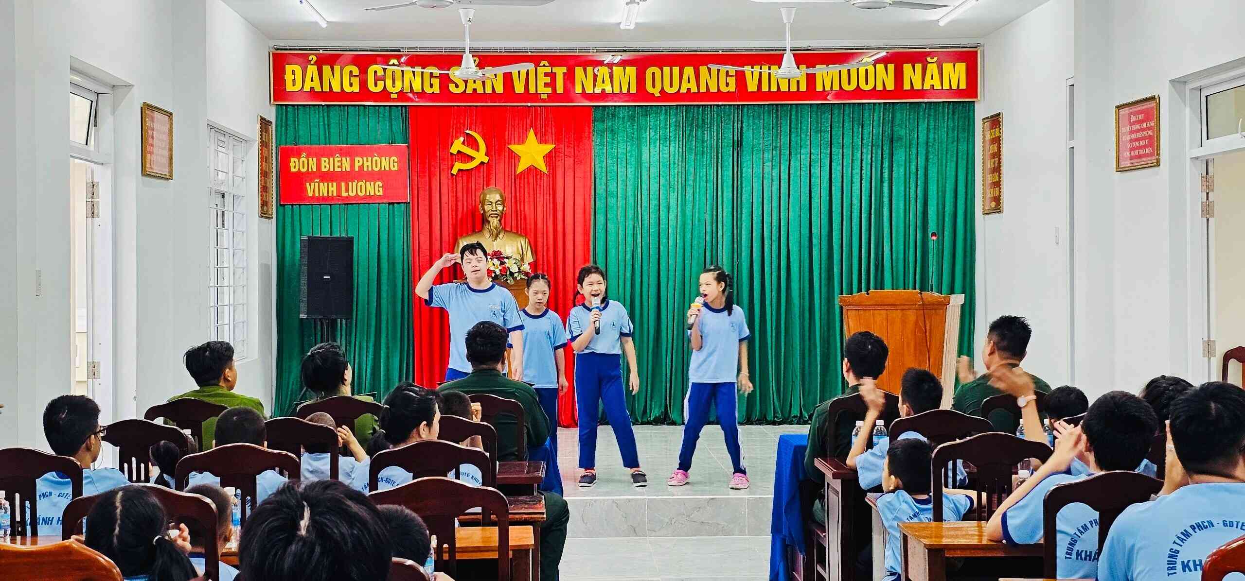 Buổi tham quan, giao lưu có sự góp mặt của Thiếu tá Võ Hiền - Chính trị viên phó, Thiếu tá Bùi Trung Kiên - Phó đồn trưởng, Thiếu tá Phạm Thanh Sơn – Phó đồn trưởng Đồn Biên phòng Vĩnh Lương cùng sự tham gia của Chi đoàn Cảnh sát cơ động tỉnh Khánh Hòa. Trong buổi giao lưu, các em học sinh đã hào hứng tham gia các tiết mục văn nghệ dành tặng cho các chú bộ đội, được lắng nghe các chia sẻ của các chú bộ đội về Quân đội Nhân dân Việt Nam. Các em học sinh cũng được tham quan khu vực sinh hoạt, học tập của các chú bộ đội tại Đồn Biên Phòng Vĩnh Lương.